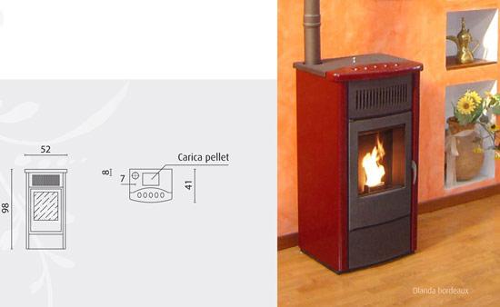 La stufa a pellet Olanda ha profondità di 41 cm e grazie